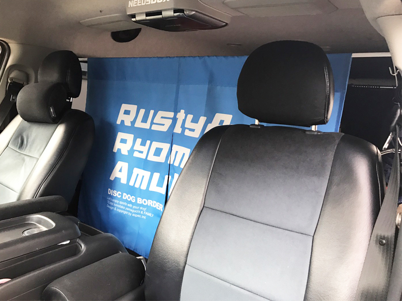 車内を目隠しするオリジナルデザインの暖簾です。
