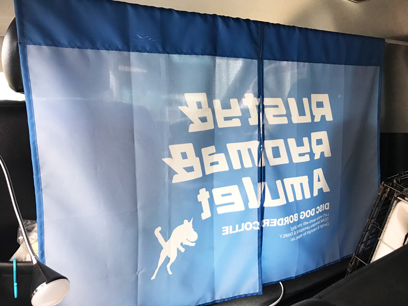 運転席の間仕切りにも使えフロントガラス側からの目隠しになります!