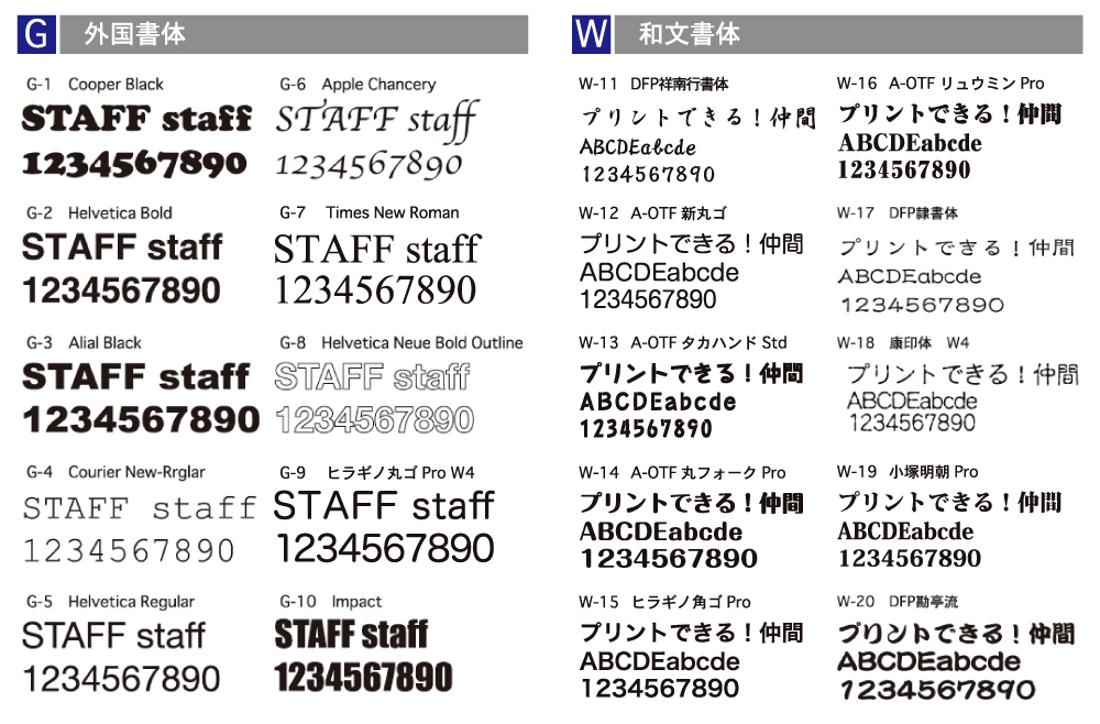 もしくは、ベースカラー・グラデーションやパターン柄の簡単なものに弊社既成書体のみ