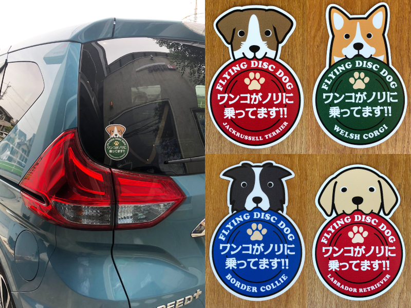 | 仕様 | 【AGILITY DOG】サイズ/約W110×H110(mm) 【FLYING DISC DOG】サイズ/約W76×H115(mm) 素材/塩ビシート(うらグレー)・インクジェットプリント・UVカットラミネート |